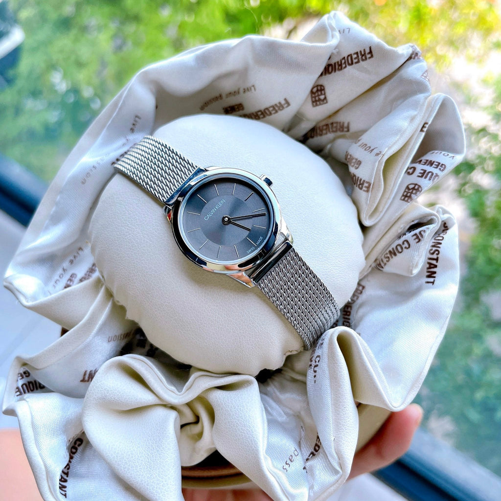 Calvin Klein Minimal Grey Dial Silver Mesh Bracelet Watch for Women - K3M23124