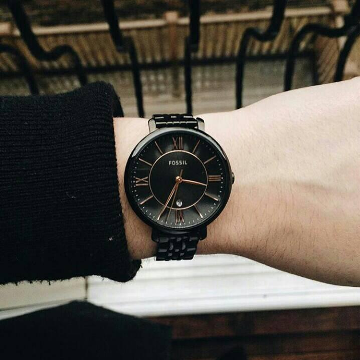 Fossil Jacqueline Black Dial Black Mesh Bracelet Watch for Women - ES3614