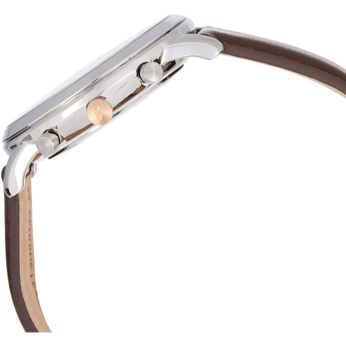This 44mm Fossil Neutra Chronograph Dial Light Brown Leather Men's Watch FS5408 features a gray satin dial with Roman numerals at the 12 and six-hour marker, chronograph movement and supple leather strap.
