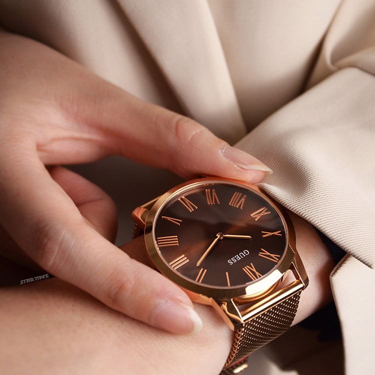 Guess Analog Brown Dial Brown Mesh Bracelet Watch for Men - GW0074G1