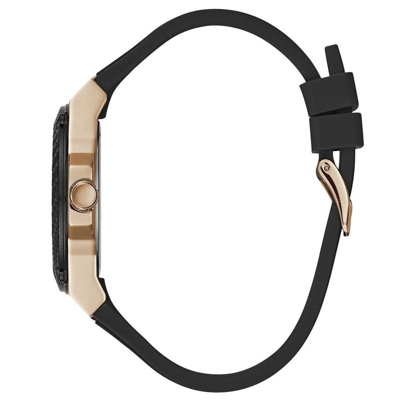 This stunning black watch by Guess is designed for the modern woman who values both style and durability. With a sleek silicone strap and a 39mm black dial, this watch is the perfect accessory for any outfit. Stay on time and on trend with the Guess Quartz Watch - W1094L6.