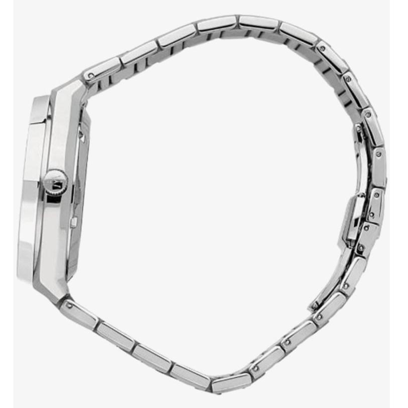 The new Maserati Stile collection plays with clean and well-defined geometry. This watch is characterized by a 42 mm steel case and bezel with exposed Silver screws. The open date perfectly accompanies the Silver colored dial, while the strap reflects the steel of the other elements. Screw-down crown and back, Water Resistant 10 ATM.