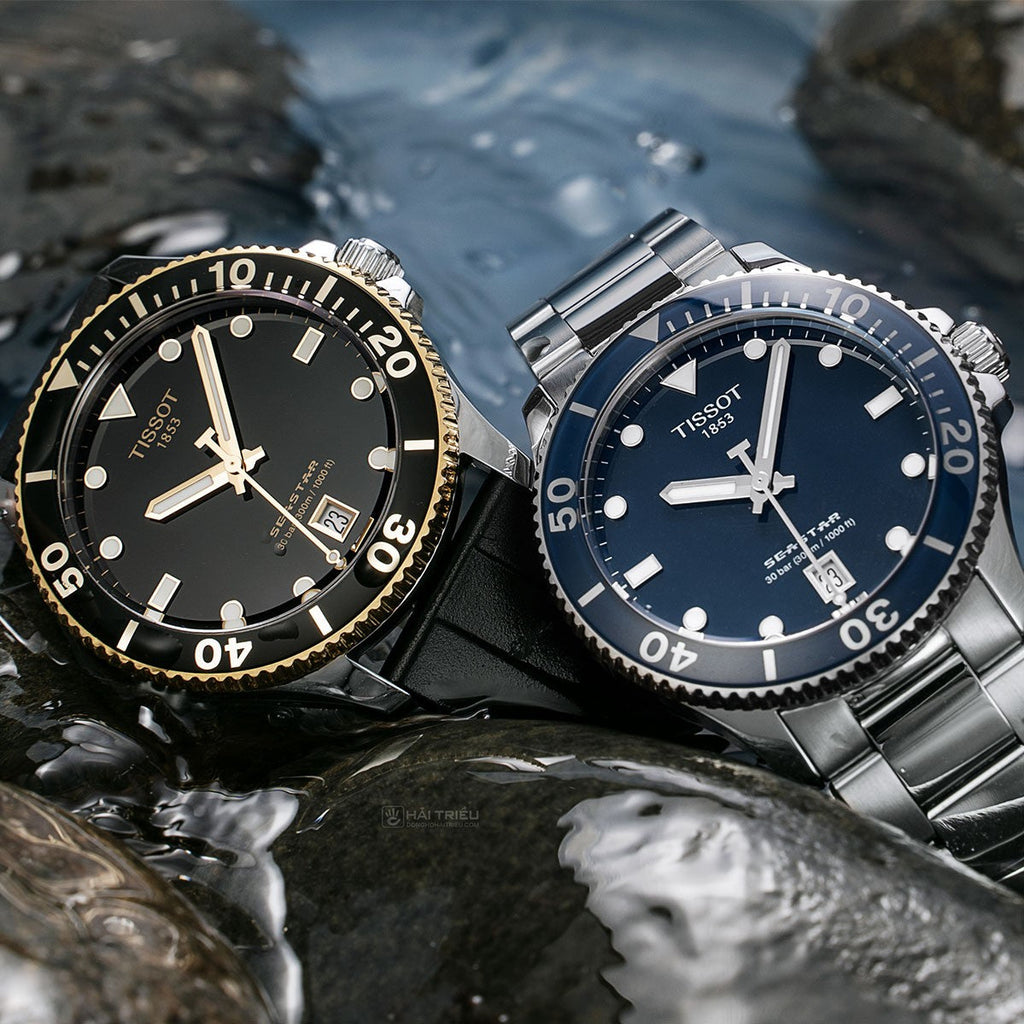 Tissot T120.410.11.051.00 Sea Star 1000 Metal Bad Men Watch. The case is made out of silver stainless steel with a Black bezel, which stands for the high quality of the item, it has a black dial. This model has got 300 meters of water resistance. it can be worn in scenarios where it is likely to be splashed but not immersed in water and will be fine in rain. The watch is shipped with an original box and a guarantee from the manufacturer.
