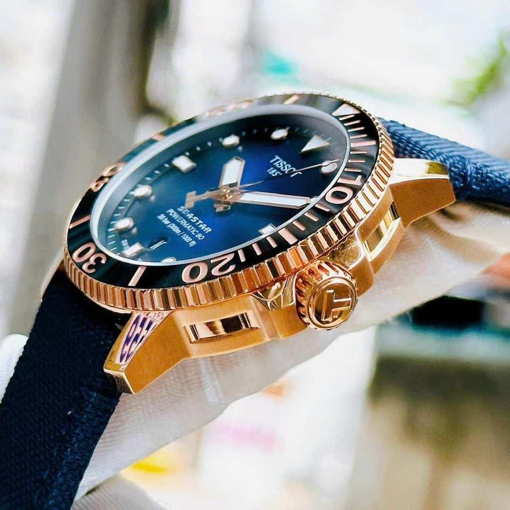 Expertly crafted for diving enthusiasts, the Tissot Seastar 1000 Powermatic 80 watch is a must-have accessory for any underwater adventure. Its blue dial and blue nylon strap exude a sleek and modern aesthetic, while the Powermatic 80 movement ensures exceptional precision and longevity. Embrace the power of the ocean with this high-performance timepiece.