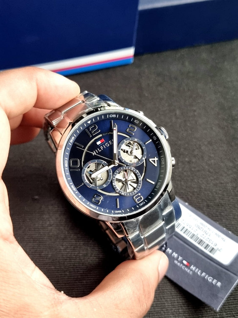 Tommy Hilfiger Keagan Blue Dial Silver Steel Strap Watch for Men - 1791293