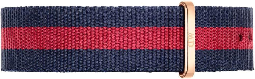 This watch with a rose gold numeral index display, mineral glass, rose gold/polished silver buckle, and rose gold setting crown uses a Quartz Miyota 1L22 movement and is 30 m water resistant. & Daniel Wellington 0101DW-GD DW00100001 Classic Leather Strap Oxford Women's Watch - Navy Red [40 mm], analog watch designed casually by combining stainless steel case & canvas strap and white dial. This watch with a numeral index display uses a Quartz Movement and is water resistant up to 30 m.