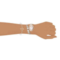 This watch is made of stainless steel with high precision and high water resistance. It also features a comfortable strap made of durable steel. It is characterized by its high accuracy and gold hands, as it operates with a Japanese quartz movement, which makes it clear and accurate to read. It comes with an elegant and modern design with a royal combination of silver and rose gold.