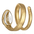 A bold fusion of color and elegance, this Just Cavalli Glam Chic wristwatch features a green dial framed by a yellow gold-plated stainless steel case. The watch is complete with a striking coil bracelet.