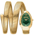 Just Cavalli Serpente Metallica Green Dial Gold Steel Strap Watch for Women - JC1L224M0045