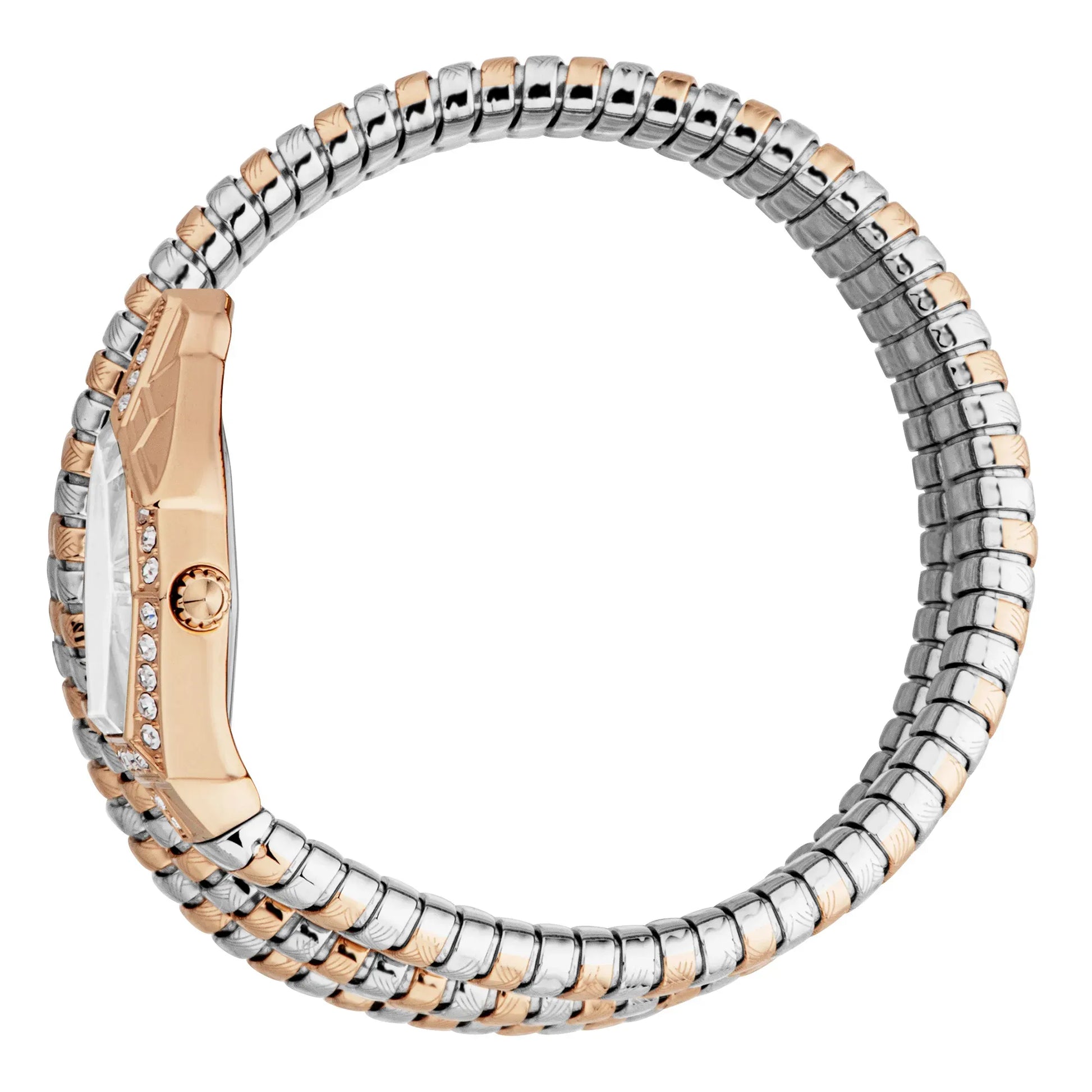• Fixed stainless steel bezel with snake details wrap around clasp