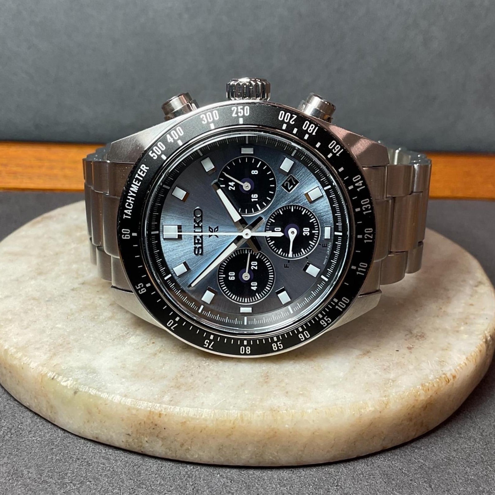 Seiko Prospex Speedtimer 41.4 Solar Chronograph Blue Dial Silver Steel Strap Watch for Men - SSC935