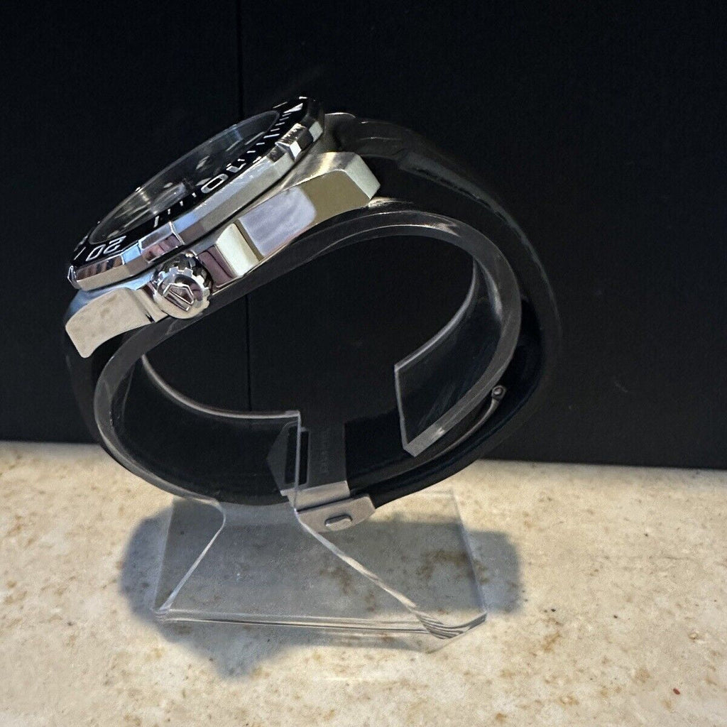 TAG Heuer Aquaracer Calibre 5 43 mm watch. Model reference: WAY201A.FT6142. Polished stainless steel case. Black dial. Automatic movement. Black rubber strap and steel folding clasp. Swiss made. The watch comes in the original packaging, with a set of documents and 2 years warranty.