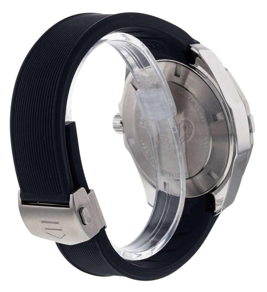 Swiss-made, this bold TAG Heuer Aquaracer is an aesthetic 43 mm watch. This model features a Steel case and a Calibre 5 Automatic movement.